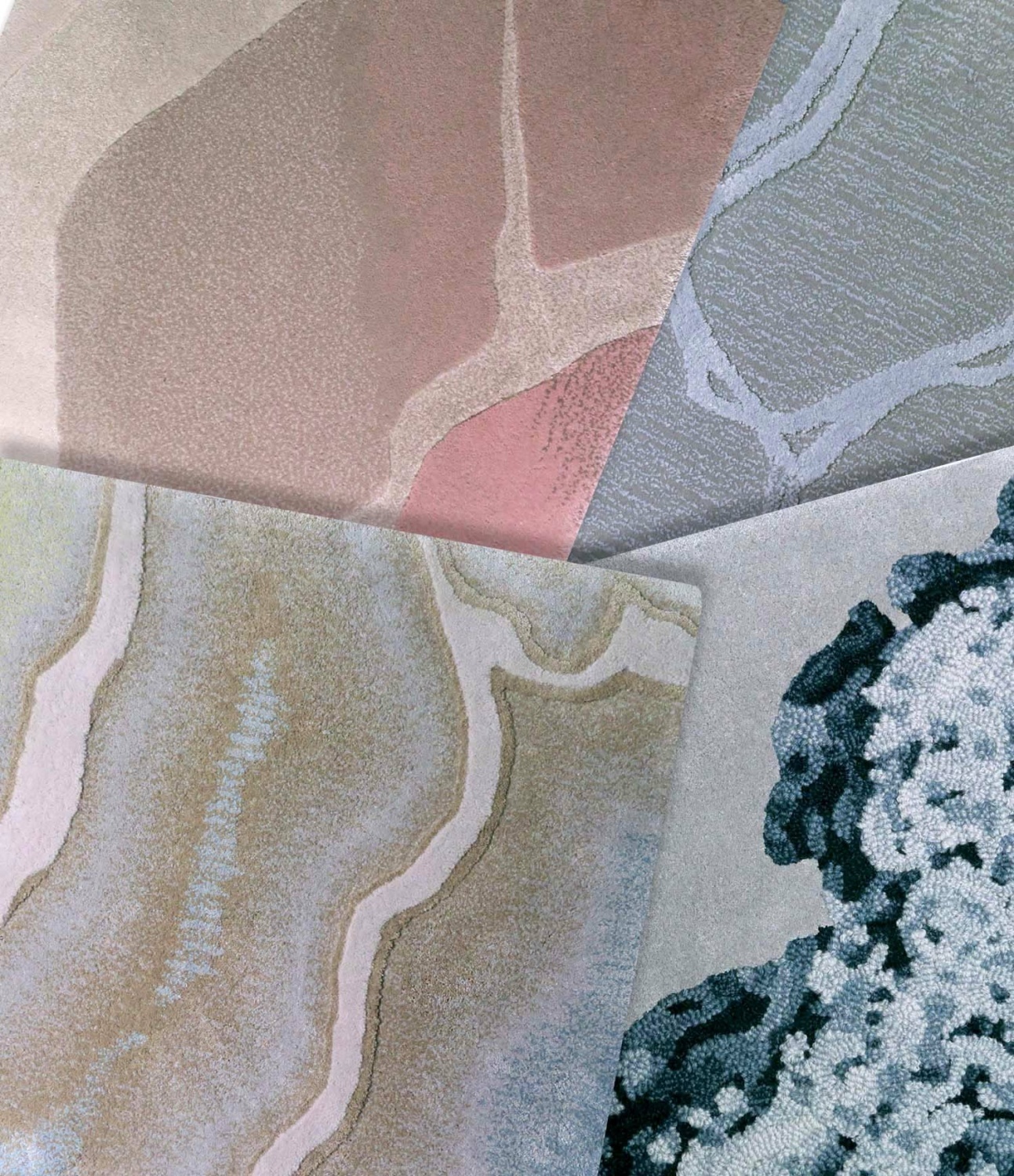 Reverence is about a record of our times. The landscape inspired pieces crack, break, and flow to evoke a kind of realism that floats between abstraction and photography, watercolor and pastels. The palette of neutrals blends seamlessly into ombre colorations. Each fiber is meticulously planned and hand-sculpted by artisans at Edward Fields - from blended silk and wool yarns, to high and low-pile contrasts, to surprising edging that - like nature - defies right angles. The collection brings the same spirit of consideration seen in each grain of material in Mastrangelo’s sculptural works.