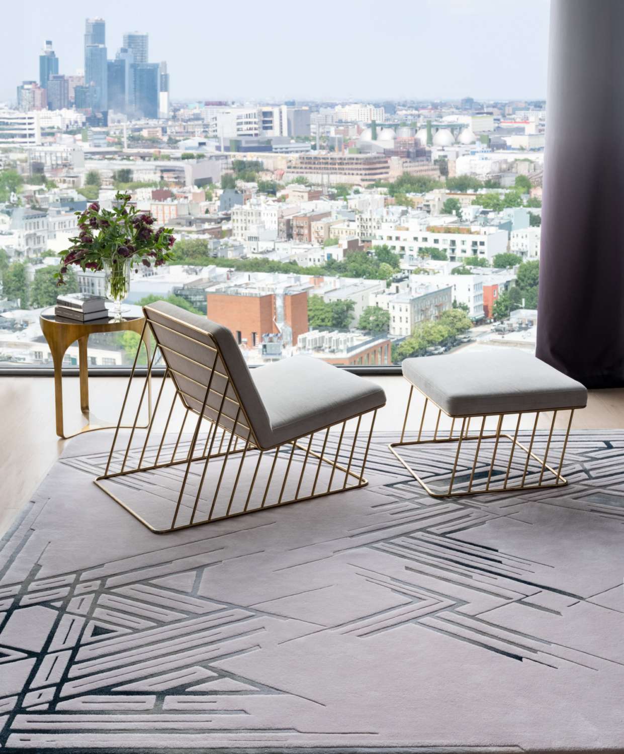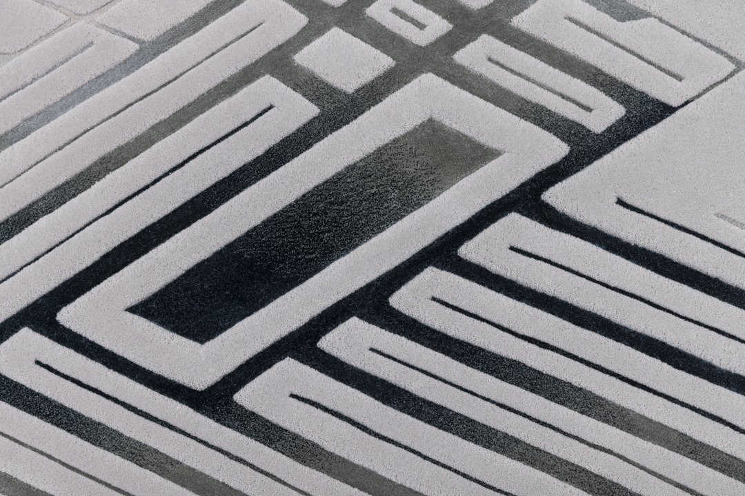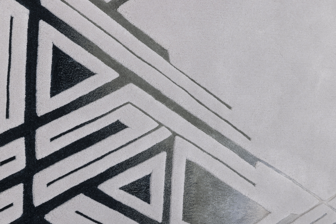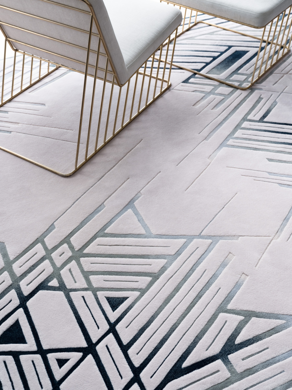 Whether in The Hive, a chain link fence, or their own district, diamonds abound in the concrete jungle. Like cloud cover on a misty day, cut pile hangs over a silk recessed geometric pattern, bringing quiet and comfort to an Art Deco motif.