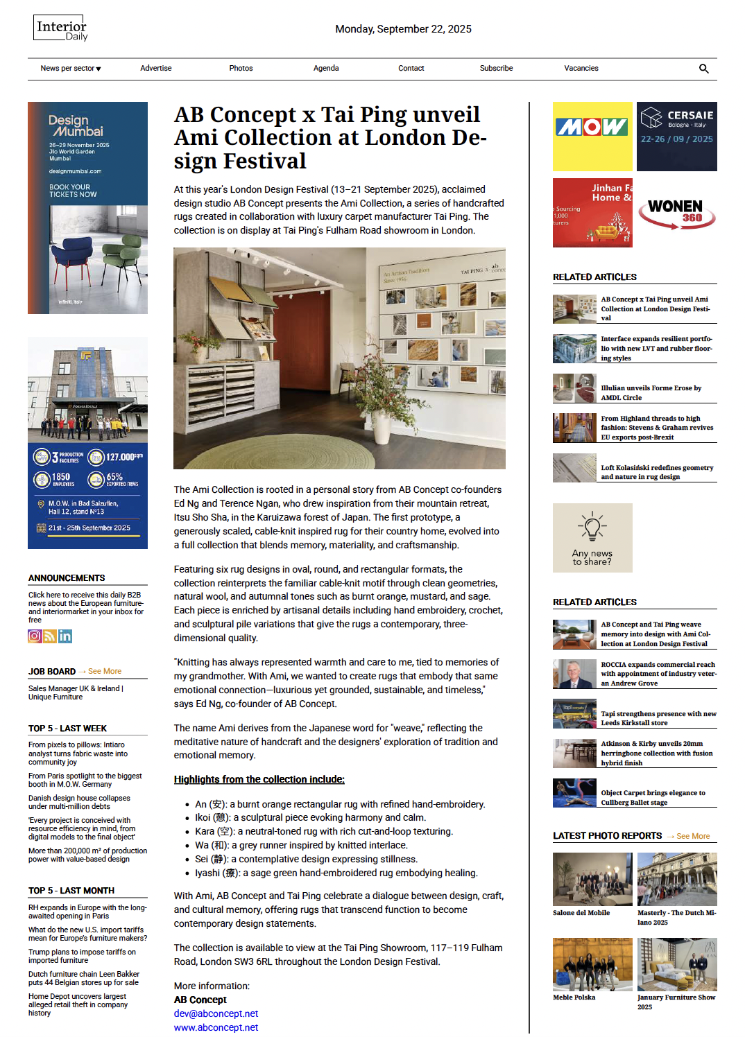 Ami represents an avant-garde rug collection born from the creative minds of Hong Kong architects and interior designers Ed Ng and Terence Ngan, co-founders of ab concept.